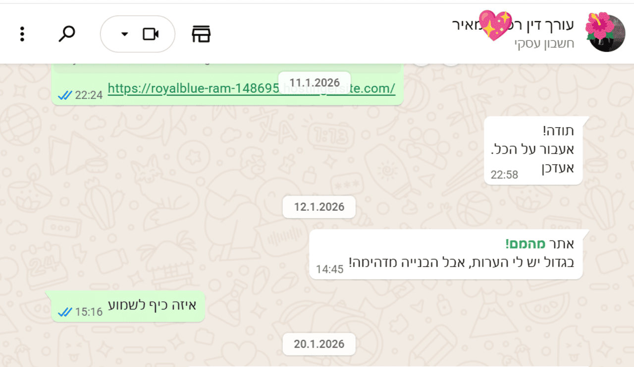 אין דבר שאנחנו יותר רוצים עכשיו מלבנות לכם אתר חדש! בשביל זה התעוררנו הבוקר 😊 שלחו לנו וואטצאפ כעת ונתחיל!